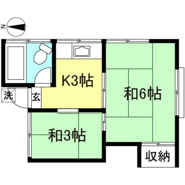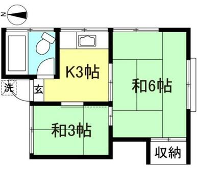 | 間取り | 2K(K3和室6和室3) | 主要採光面 | 南 |