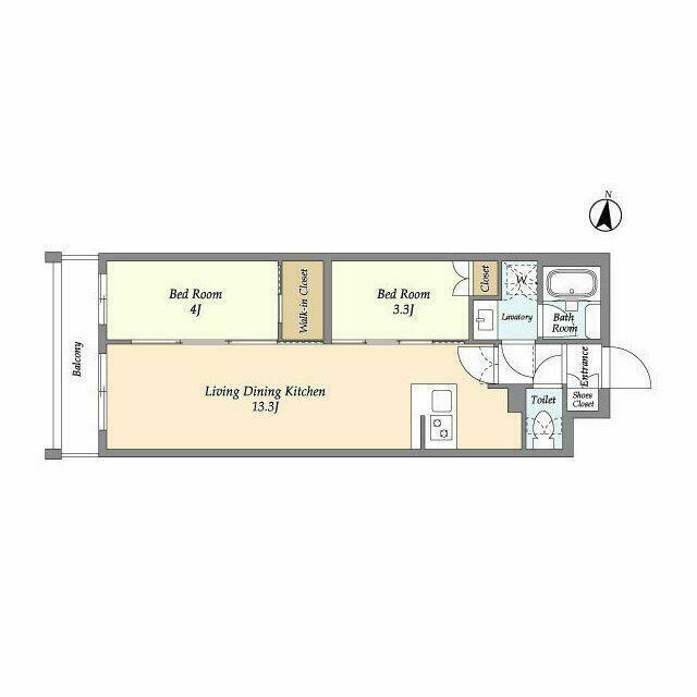 | 間取り | 2LDK(LDK13.3洋室4洋室3.3) | 主要採光面 | 西 |