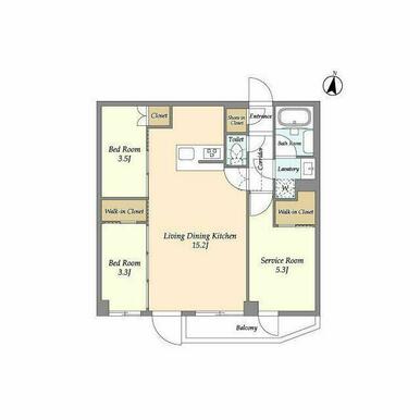 | 間取り | 2SLDK(LDK15.2洋室3.5洋室3.3納戸(S)5.3) | 主要採光面 | 南 |