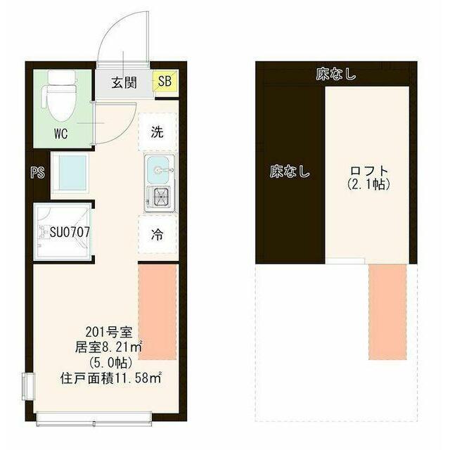 | 間取り | ワンルーム(洋室4.5ロフト2.8) | 主要採光面 | 西 |