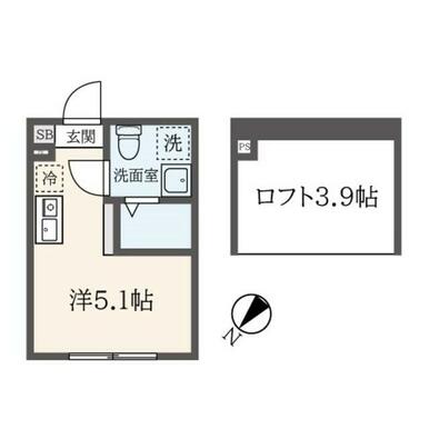 | 間取り | ワンルーム(洋室5.1ロフト3.9) | 主要採光面 | 北西 |