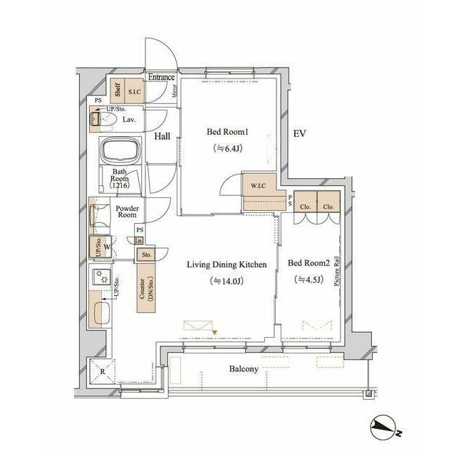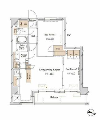 | 間取り | 2LDK(LDK14洋室6.4洋室4.5) | 主要採光面 | 東 |