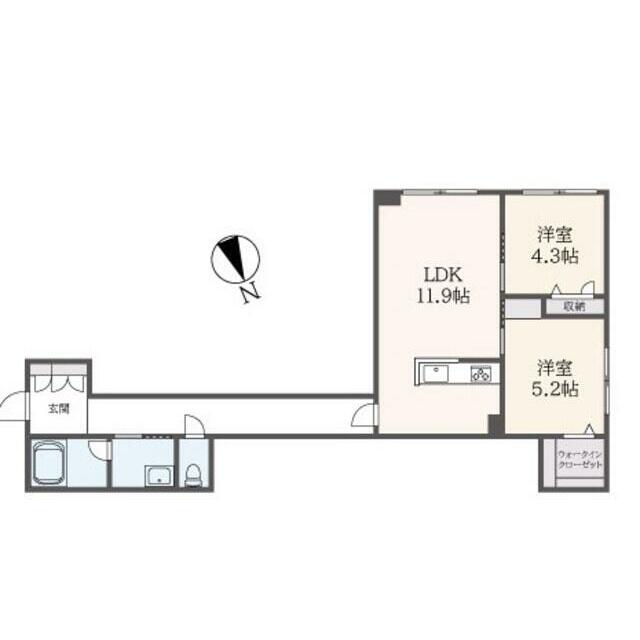 2LDK(LDK11.9洋室5.2洋室4.3) |