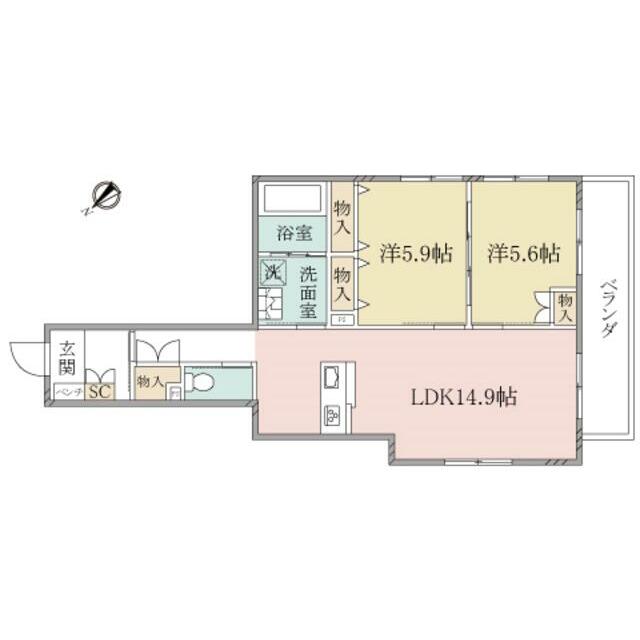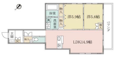 | 間取り | 2LDK(LDK14.9洋室5.9洋室5.6) | 主要採光面 | 南 |