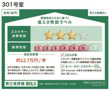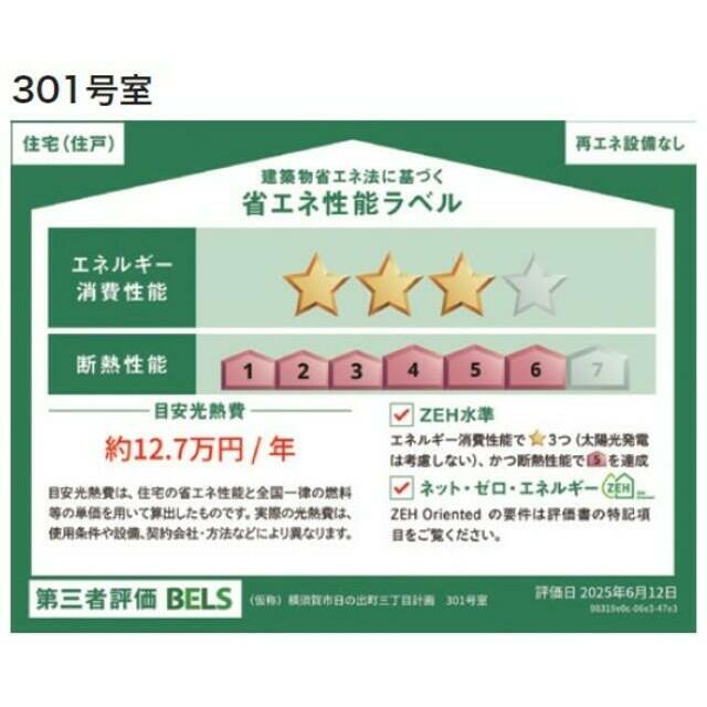 | エネルギー消費性能 | ★★★(削減率20%達成) | 断熱性能 | 6段階/7段階中 |