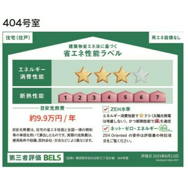 | エネルギー消費性能 | ★★★(削減率20%達成) | 断熱性能 | 7段階/7段階中 |