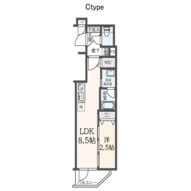 | 間取り | 1DK(DK8.5洋室2.5) | 主要採光面 | 西 |
