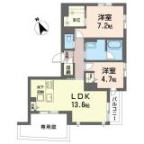 | 間取り | 2LDK(LDK13.6洋室7.2洋室4.7) | 主要採光面 | 南 |